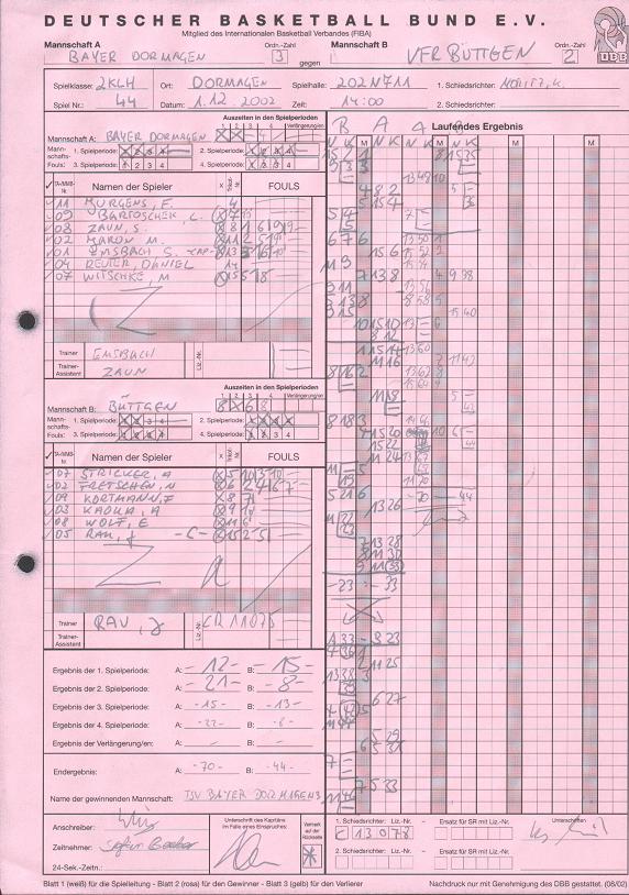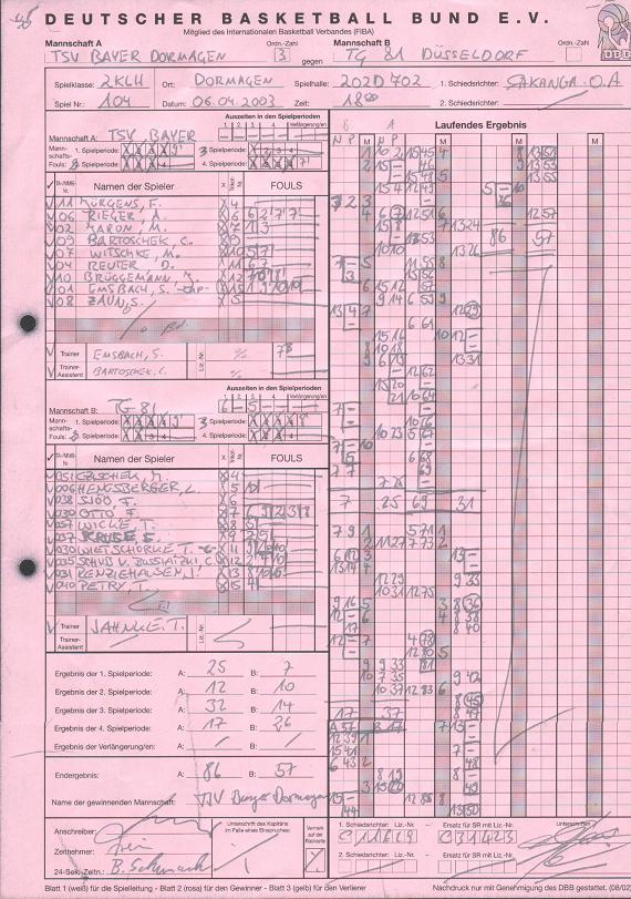 TSV Bayer Dormagen III nur mit 82:48 gegen die überforderten Spieler der TG 81 Düsseldorf gewonnen :).